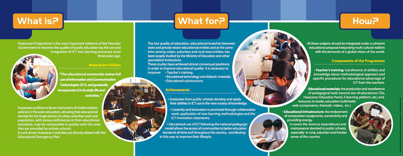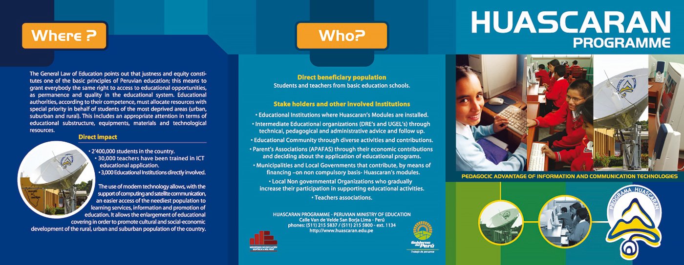 This three-folded graphic piece promoted one of the earliest initiative programmes by the Ministry, aimed to be an instrument of modernization policies in Peruvian education and improve its quality, through technological resources.