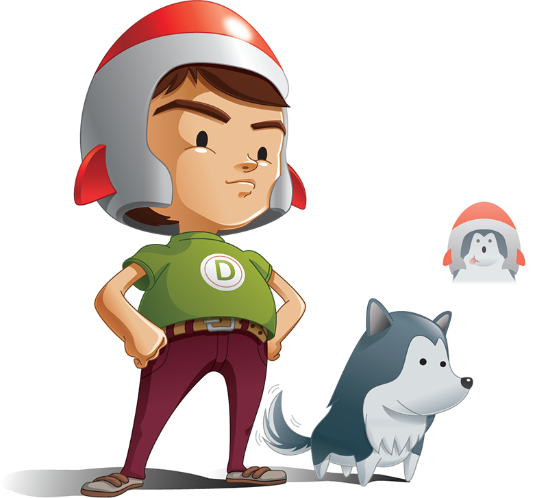 Following the creation of my personal brand logo, a head adorned with a rocket helmet, I was inspired to develop a full character for my brand. This led me to create “Rocket,” a youthful protagonist, and his sidekick, “Boris,” a Siberian Husky inspired by a beloved dog I once owned.
