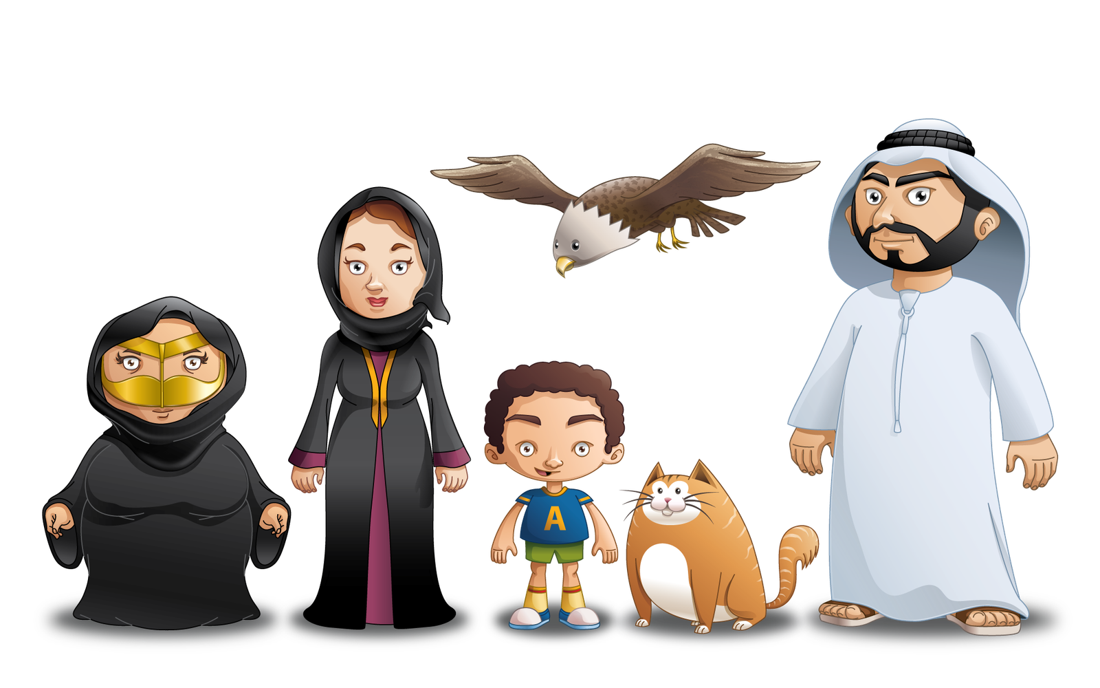 The newspaper had the idea to publish some stories about an Emirati family (a local family), with topics related to the Arabic culture and tradition. The family characters I created and illustrated were: a grandma, a mom, a dad, a son, and their two pets (a cat and a falcon). At the end, the project didn’t come to fruition, but even so, I learned and enjoyed a lot making the characters for this fascinating culture.