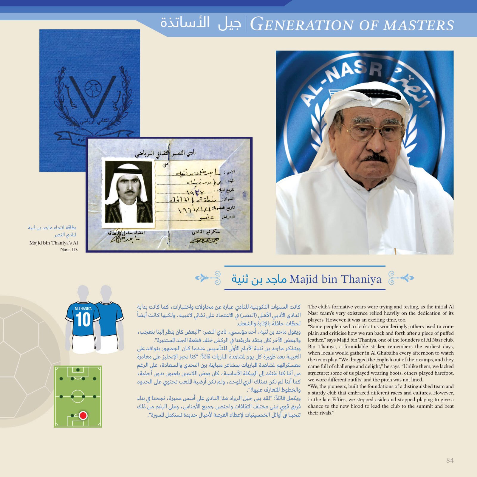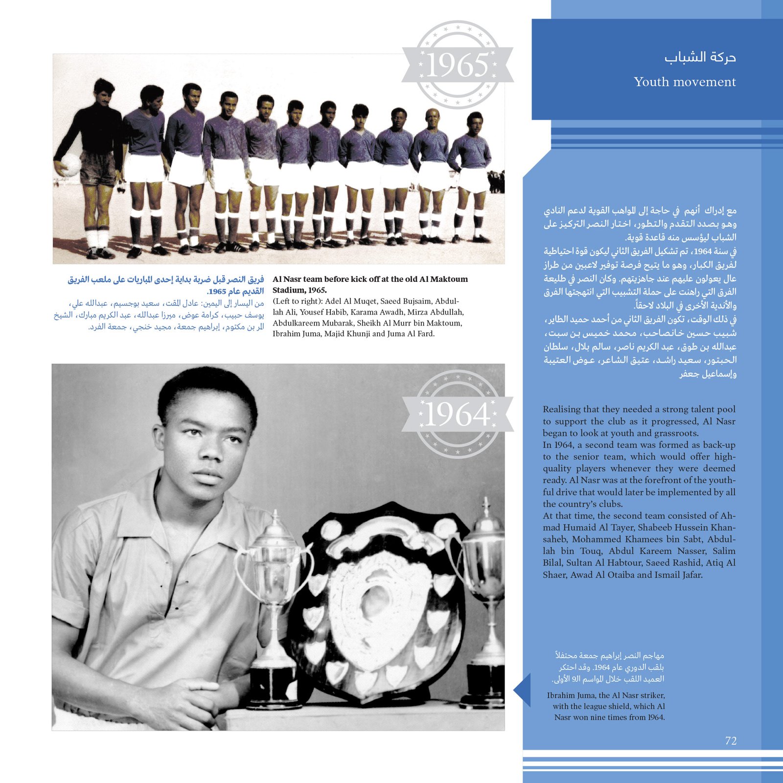 “Al Nasr – The Official History of Al Nasr Cultural and Sports Club” tells the story of this renowned Football club from Dubai. From its humble origins to the glory of its titles, earned over the years in different championships across the region.