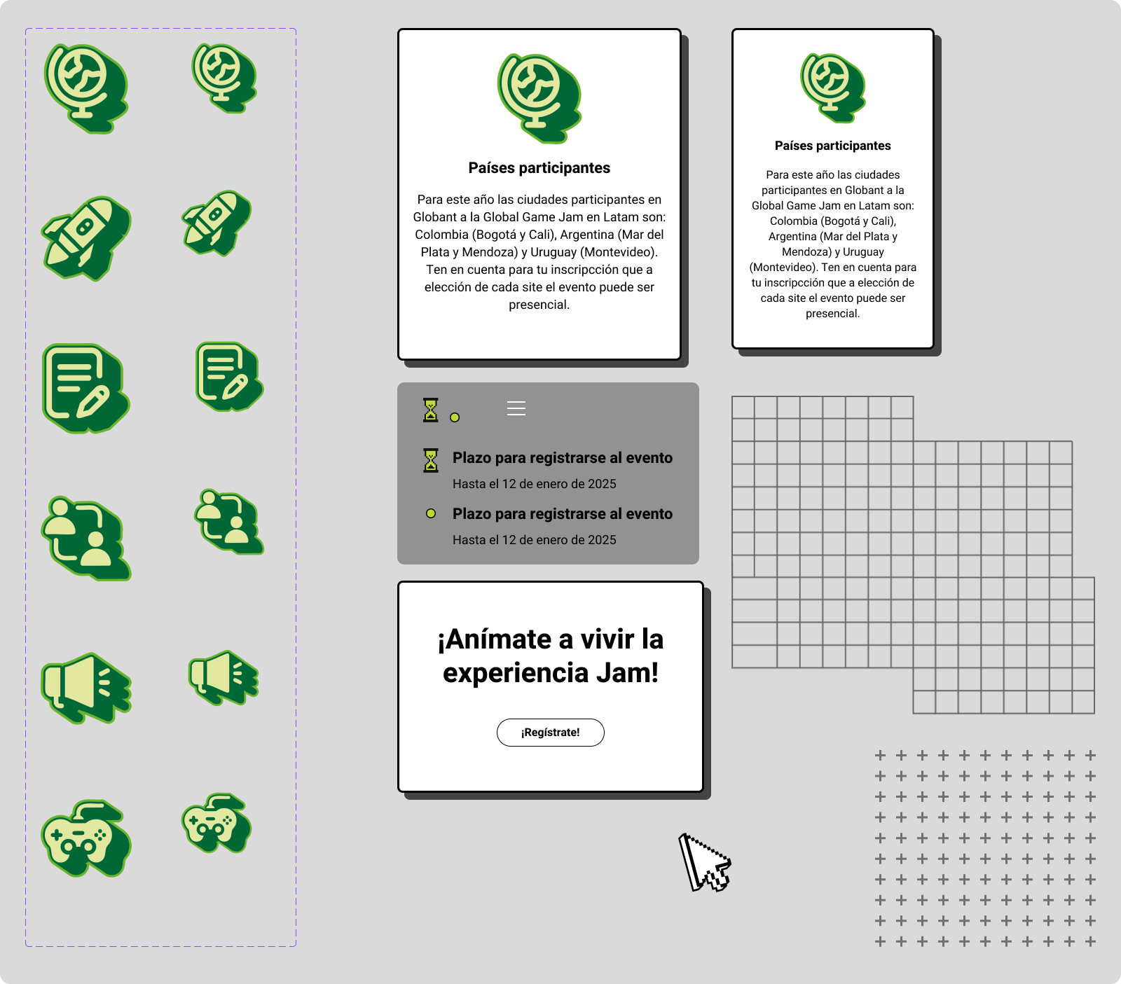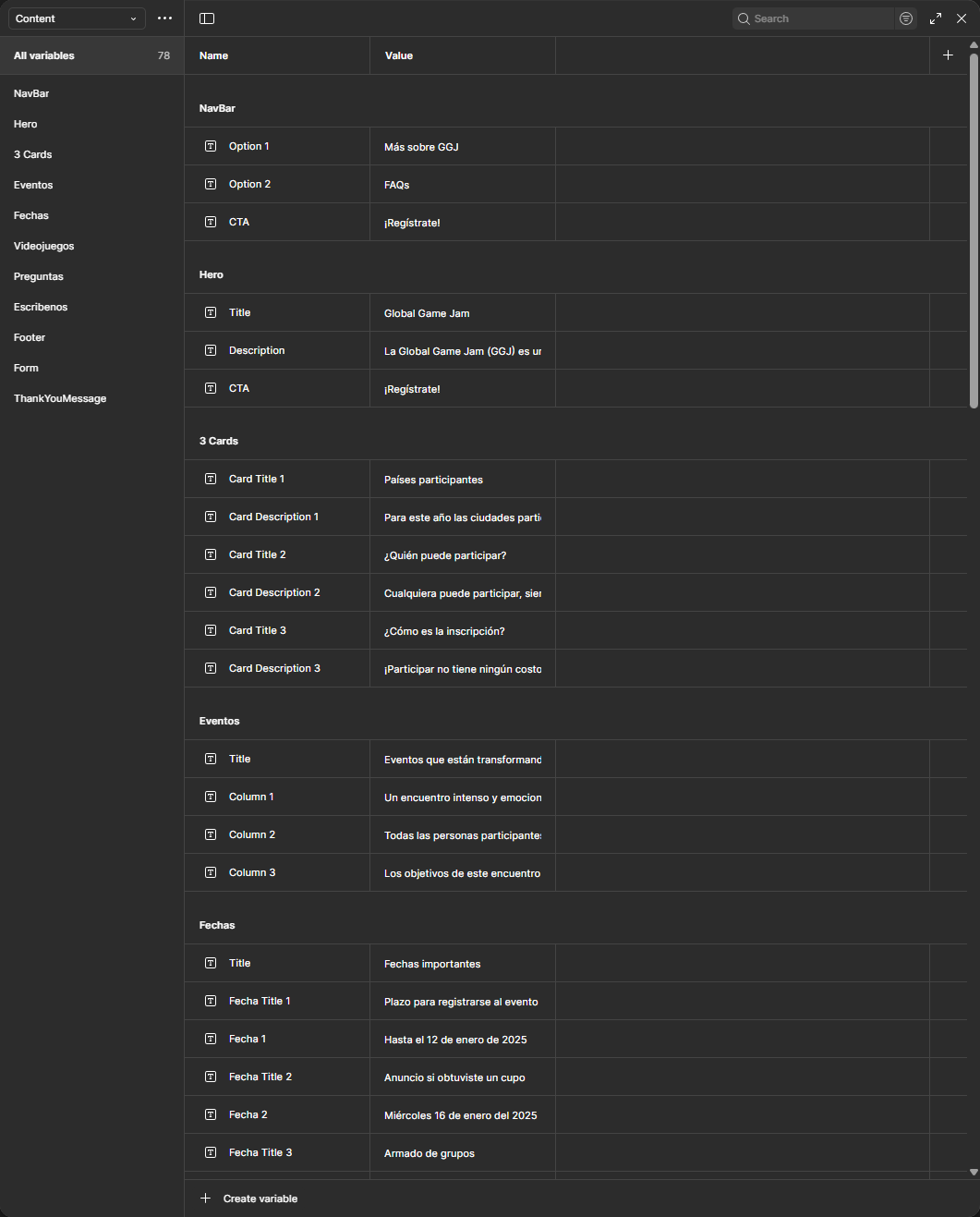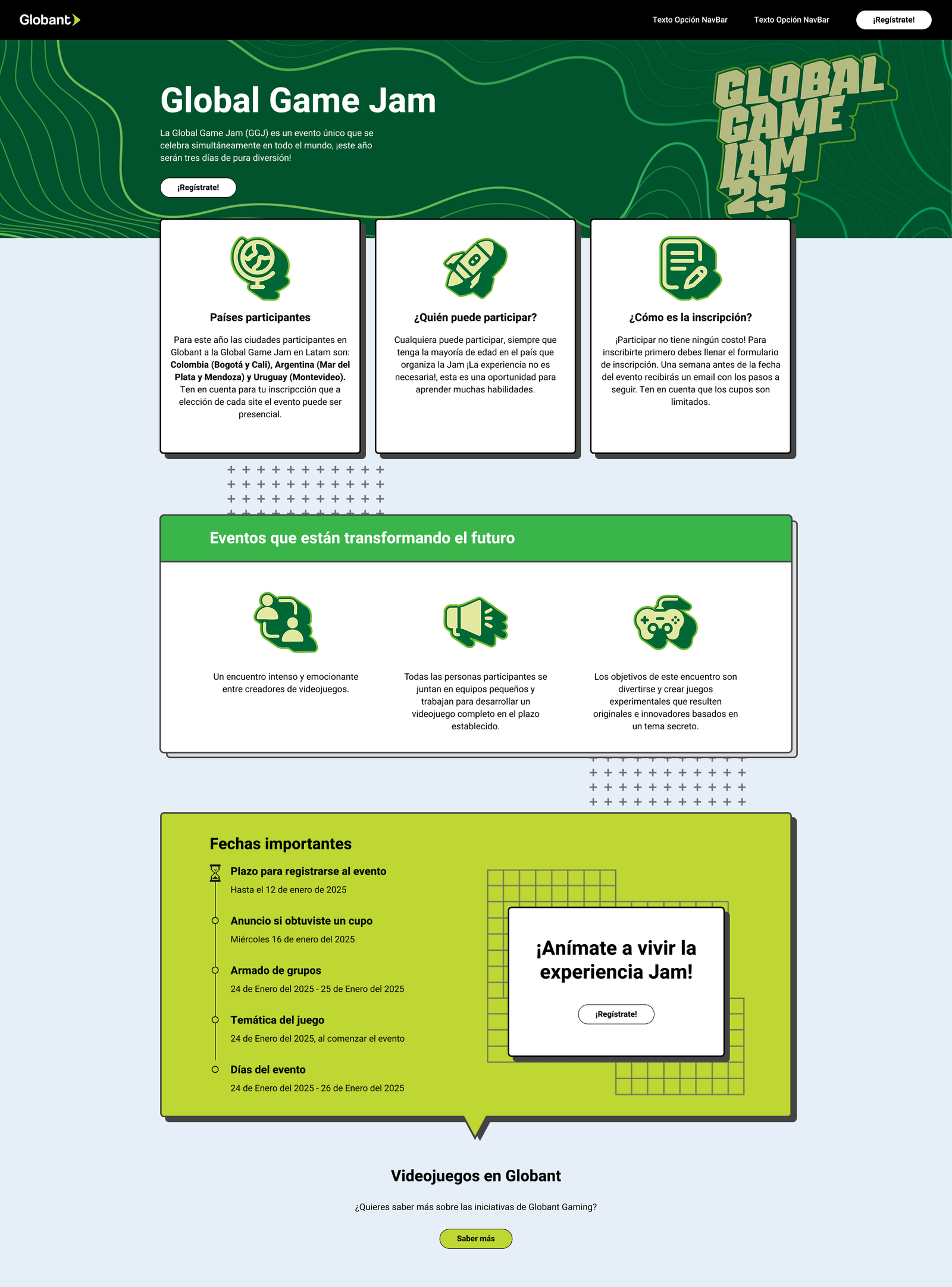The Global Game Jam is a video game creation public event, celebrated yearly around the world, where people gather in teams to develop video games in a 24-hour timeframe. Globant, as a tech company, not only participates but also offers its offices for the event to take place. The particular request here was to convert the already designed registration page made on Adobe XD to Figma, with all the requirements this conversion involves.