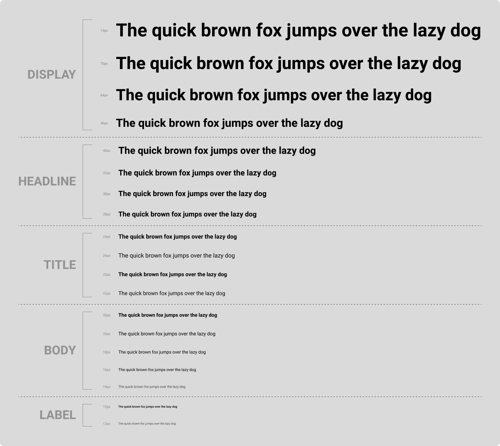 Typography Scale for Display, Headline, Title, Body and Label.