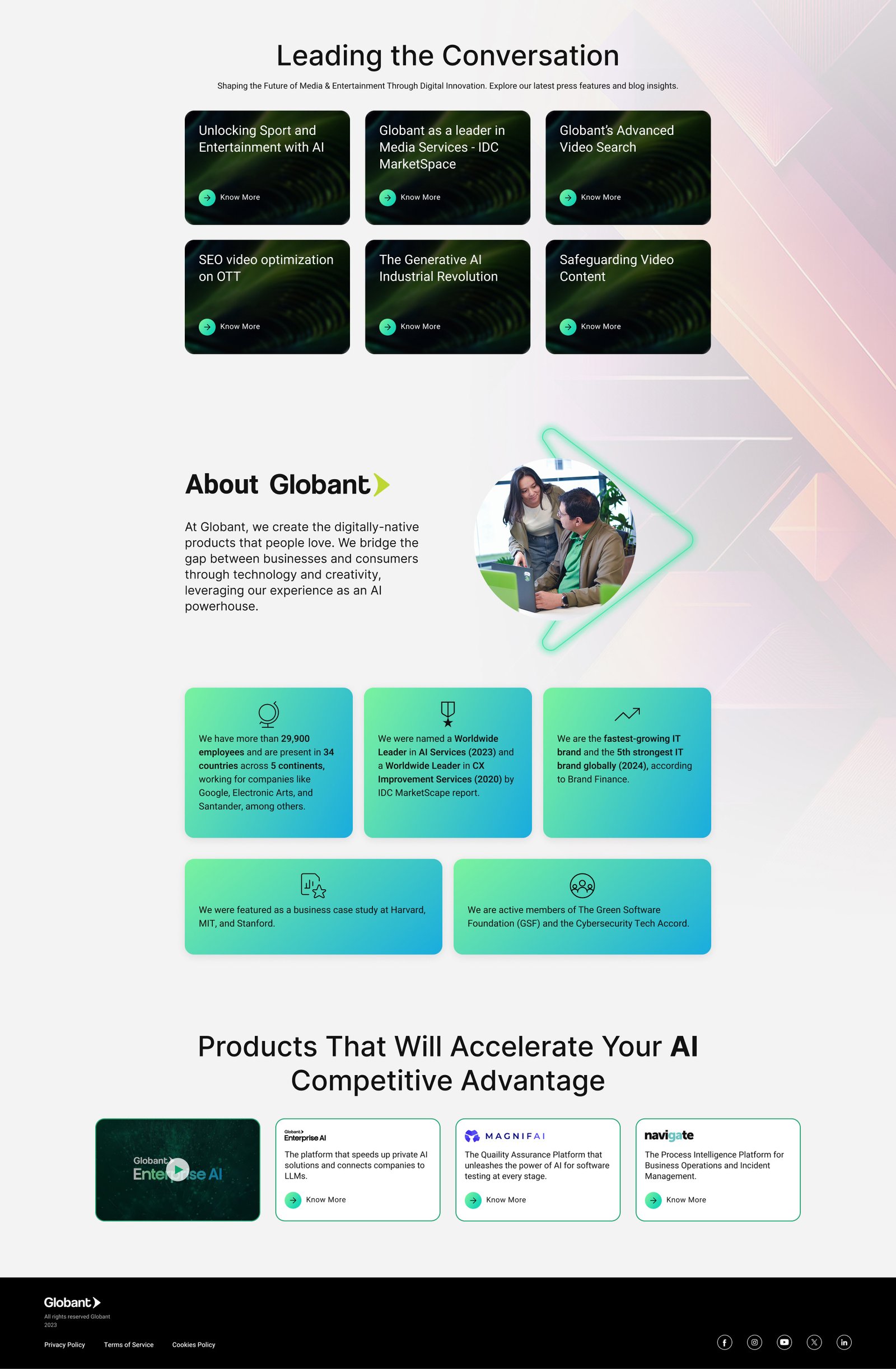 - The final execution has resulted in a professional and highly engaging landing page that effectively promotes Globant’s leading role in AI and Media & Entertainment.