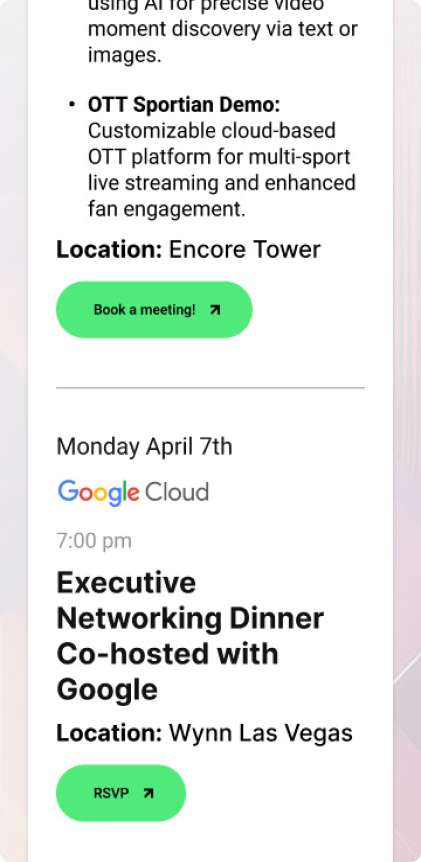 - A centralized hub where users can quickly grasp the scope of the exhibition was delivered. From the specific event times and speakers to the detailed products that accelerate competitive advantage.