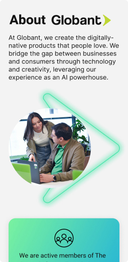 - Balance the dark, professional Globant brand aesthetic with vibrant, gradient elements to convey innovation and future-forward thinking.