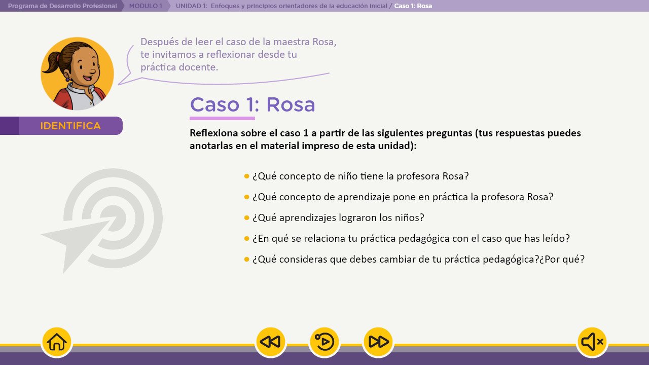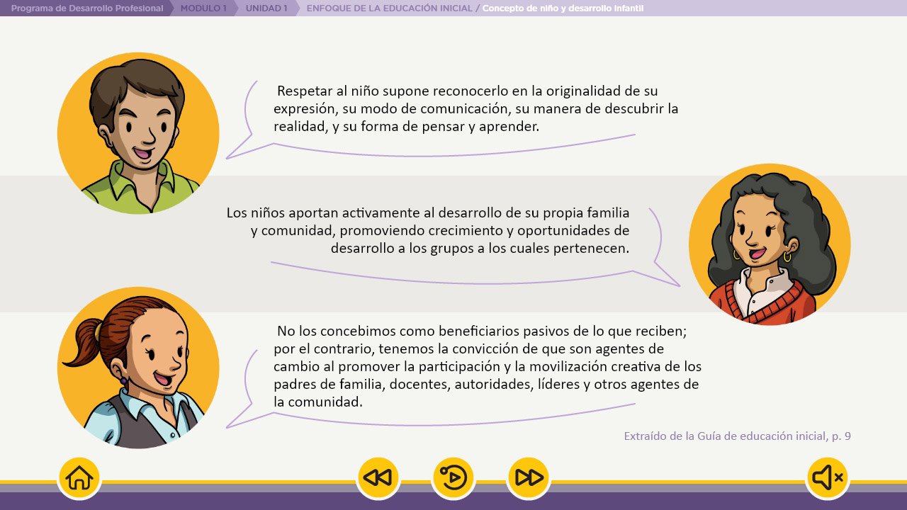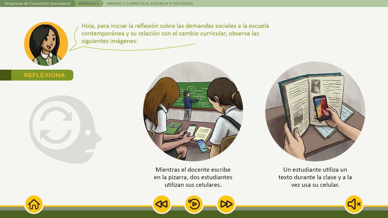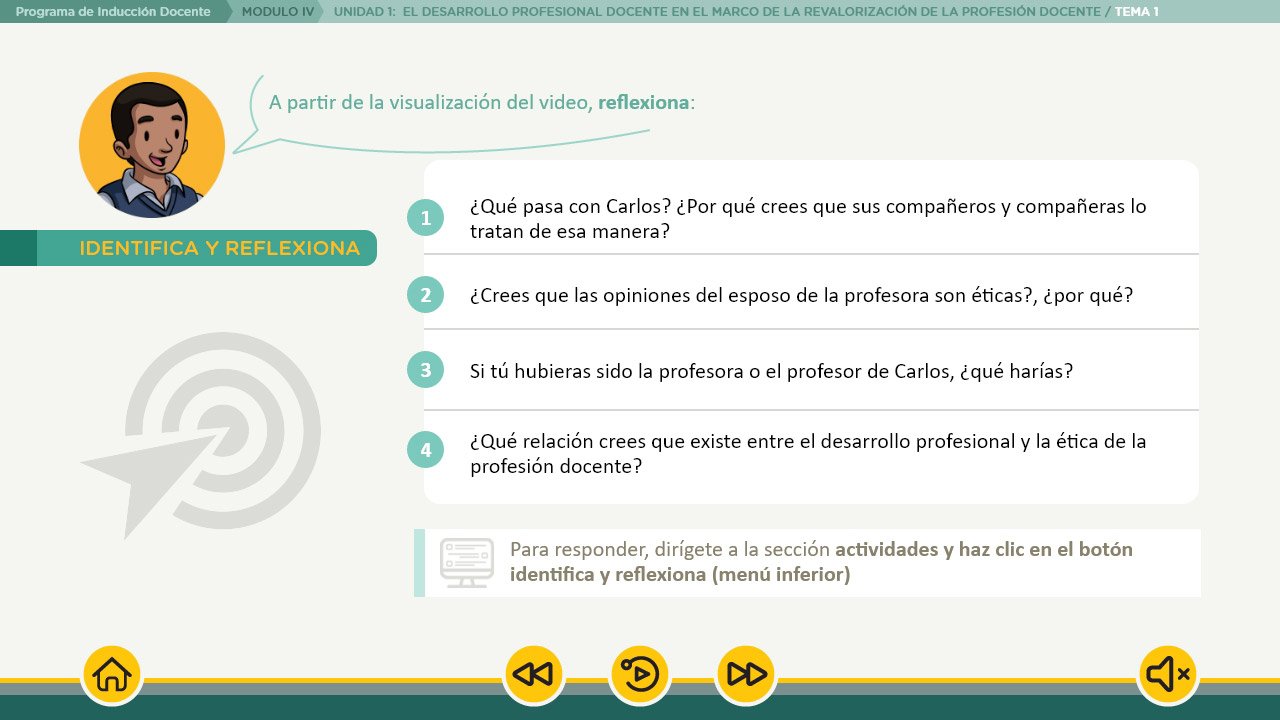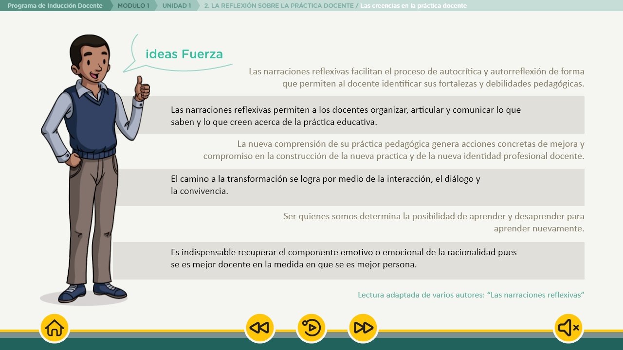 Each virtual course module was created following the design guidelines, focusing on the clarity not only of the information but also the one for the interface, navigation, and interaction of the characters (hosts) with the viewer, in the different scenarios like content explanations, dialogs between the characters, and requested exercises.